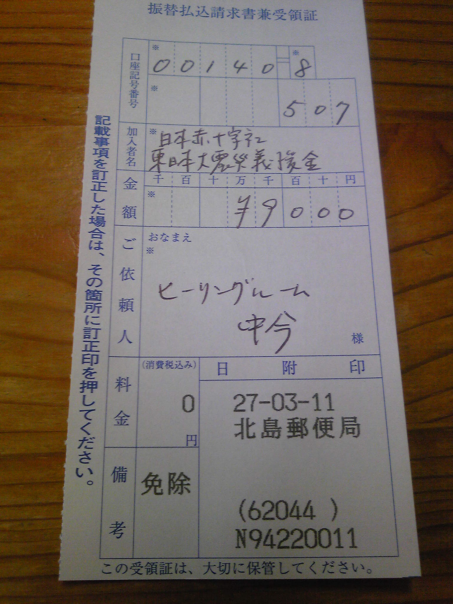 お預かりした金額を義援金に送金してまいりました。