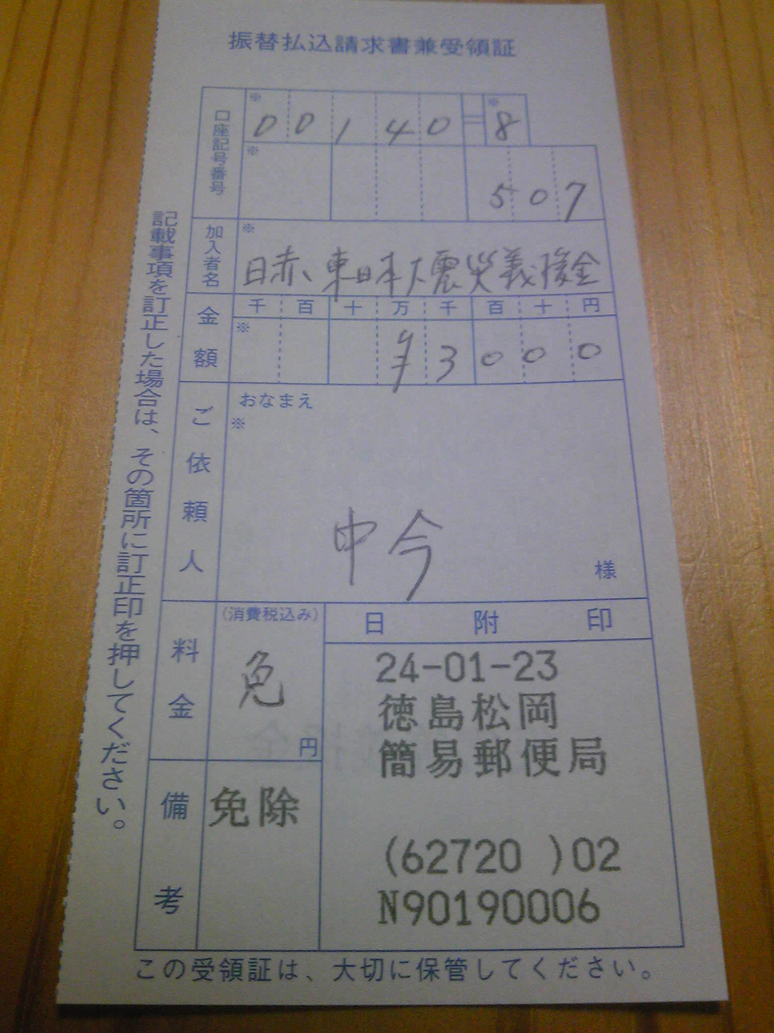 今回の交流会で集まった参加費全額を、日本赤十字社を通じ、「東日本大震災 義援金」に寄付いたしました。