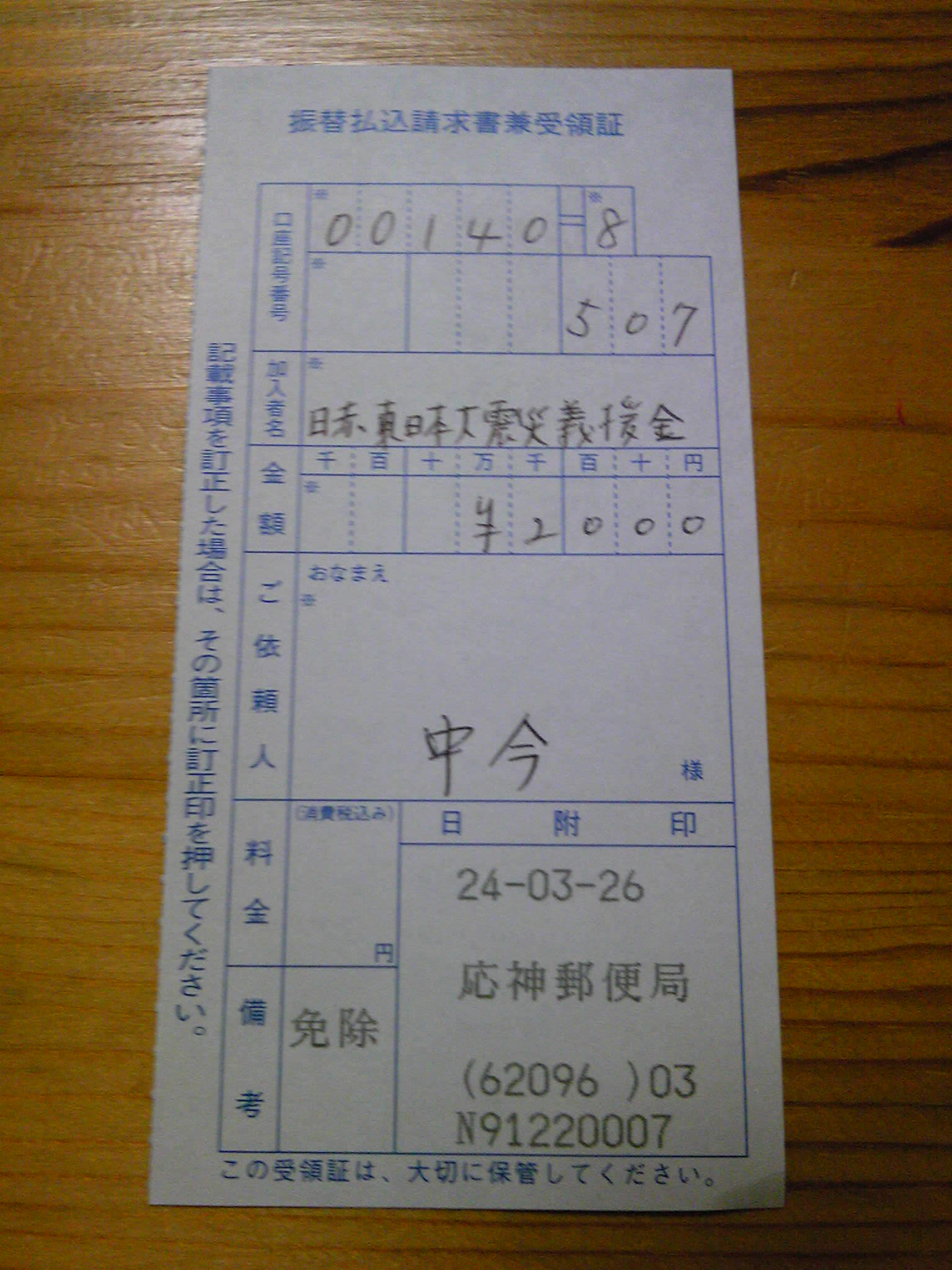 集まった参加費全額を、日本赤十字社を通じ、「東日本大震災 義援金」に寄付いたしました。