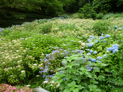文書館のちょうど上くらいに、アジサイが集っている小さい谷があります。