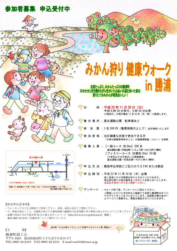 イベントの名は「みかん狩り健康ウォーク in 勝浦」、チラシは上の画像のものです。